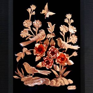 تابلو معرق مسی طرح گل و مرغ کد ۱۰۵۷۳